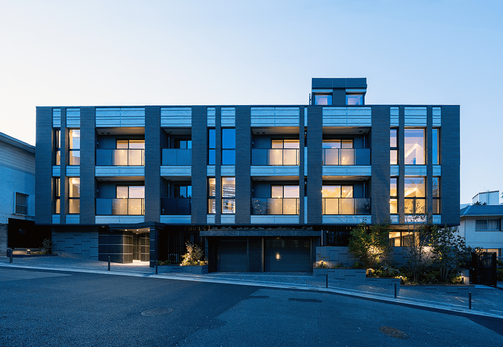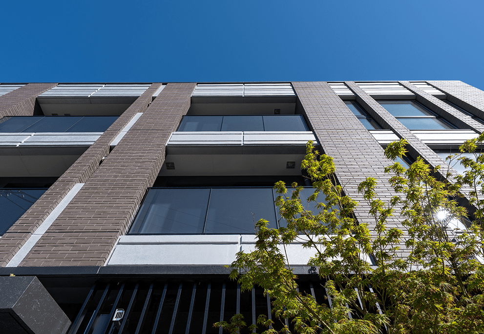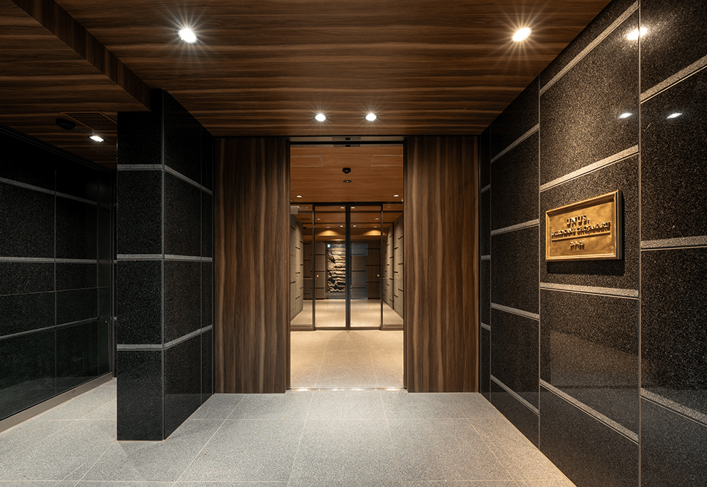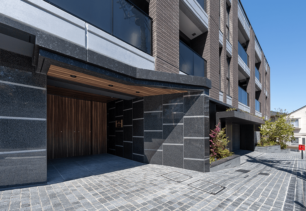UNUS.シリーズ、記念すべき第1号物件。デザインコンセプトは、歴史と風格あるこの街にふさわしい「SOLEMNITY MODERN」(ソレムニティ モダン)。ファサード基壇部には重厚感を感じさせる御影石を採用するとともに、マテリアルカラーをシンプルに組み合わせコントラストを付け構成することでSOLEMNITY(荘厳)とMODERN(近代的)を表現しています。